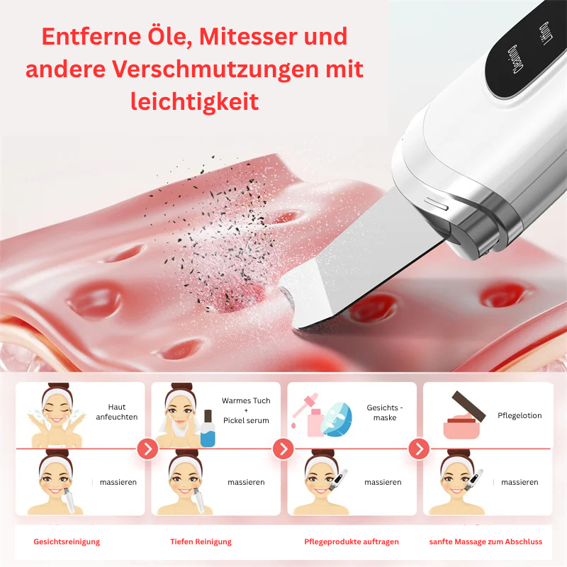 Dank der Ultraschall Technologie, die Ihre Poren von sämtlichen Verschmutzungen, Make up Rückständen etc. befreit werden Sie Ihr Gesicht schon nach den ersten Behandlungen nicht wieder erkennen.